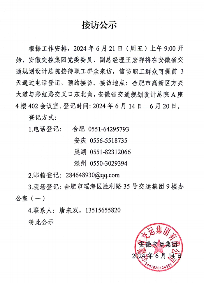 交控集團(tuán)領(lǐng)導(dǎo)接訪(fǎng)公示